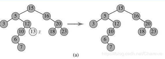 p为单支节点(即只有左子树或右子树)。让p的子树与p的父亲节点相连,删除p即可(注意分是根节点和不是根节点),如图b;