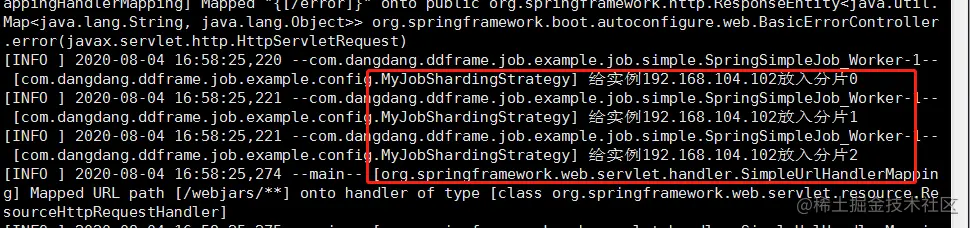 可以发现控制台打印输出了自定义分片策略代码中的日志,此时连接运维平台查看,这里配置有修改,稍后可以自行下载源码查看调试。