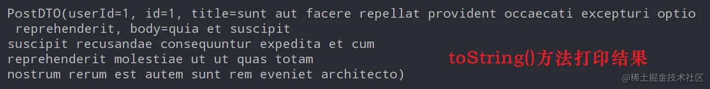 System.out.println("HTTP 响应body:" + postDTO.toString());
