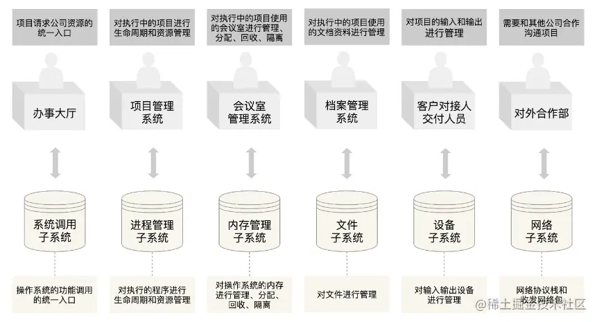 操作系统其实就像一个软件外包公司,其内核就相当于这家外包公司的老板。所以接下来的整个课程中,请你将自己的角色切换成这家软件外包公司的老板,设身处地地去理解操作系统是如何协调各种资源,帮客户做成事情的。