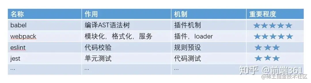 babel, webpack, eslint, jest 等的具体使用不展开讨论