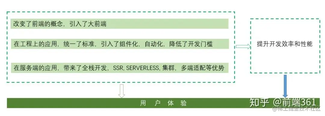 在前端独立部署的基础上,node 端加入了数据处理,接口代理,终端适配等逻辑代码,使得前端扩展性,性能大大增强。常见的全栈框架有egg,midway等