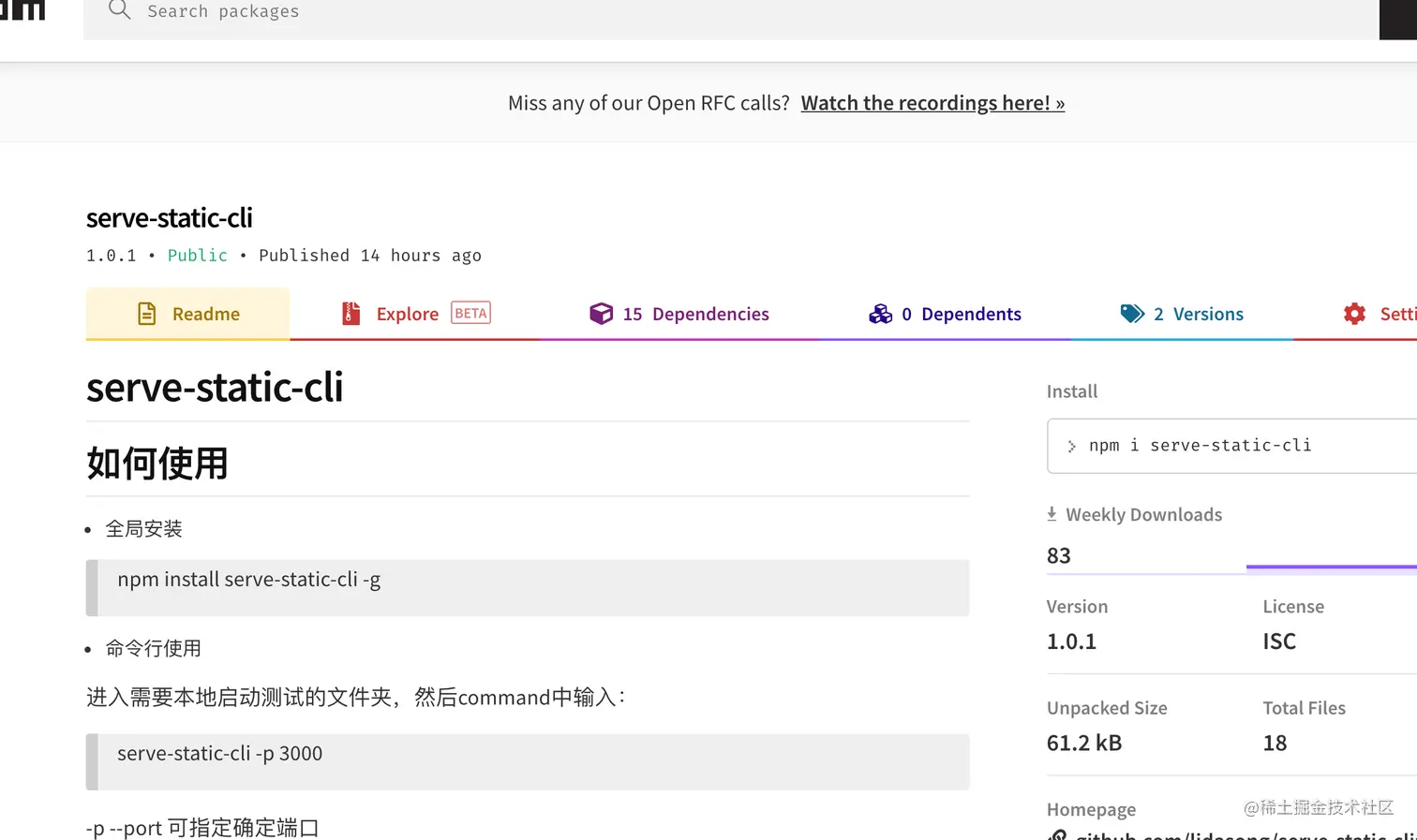 安装方式比较简单,直接使用npm或者其他包管理cli进行全局安装,这里使用npm为例: