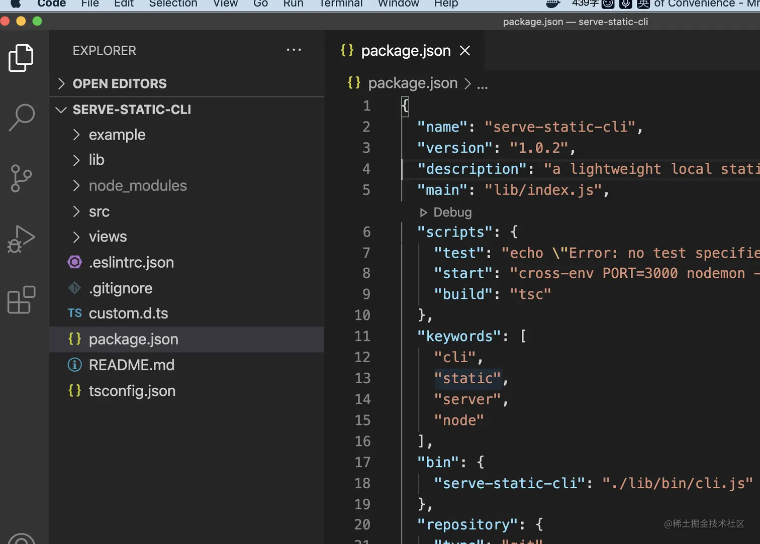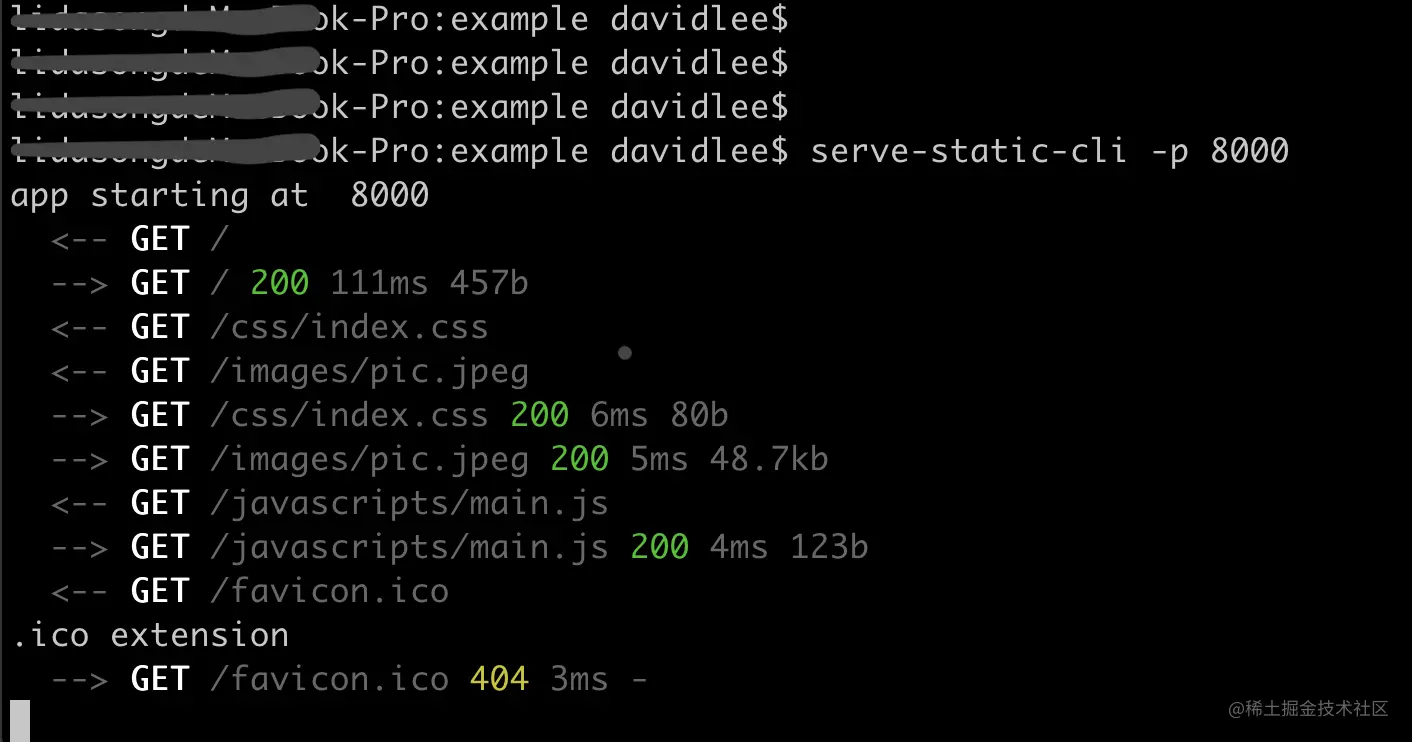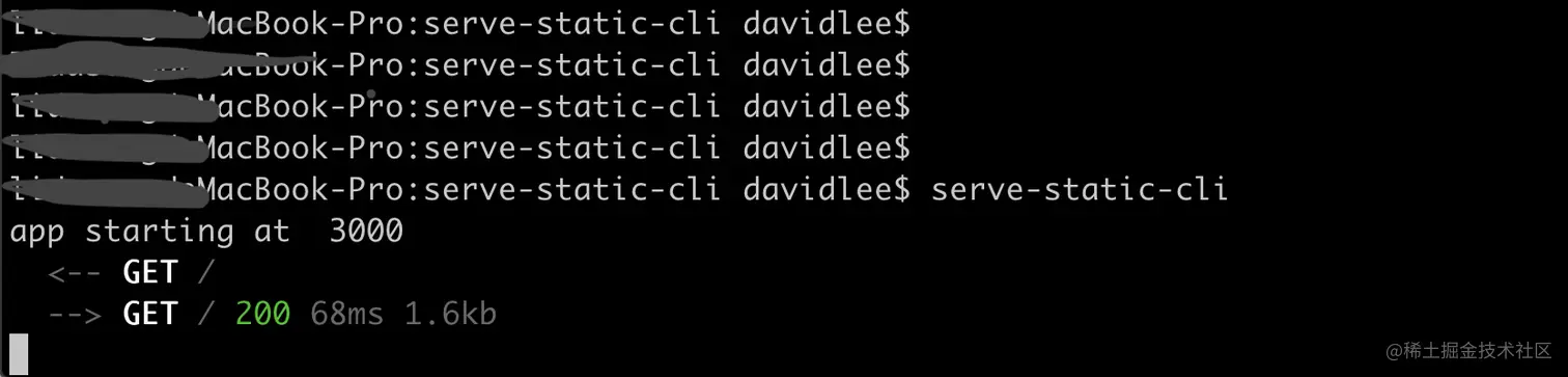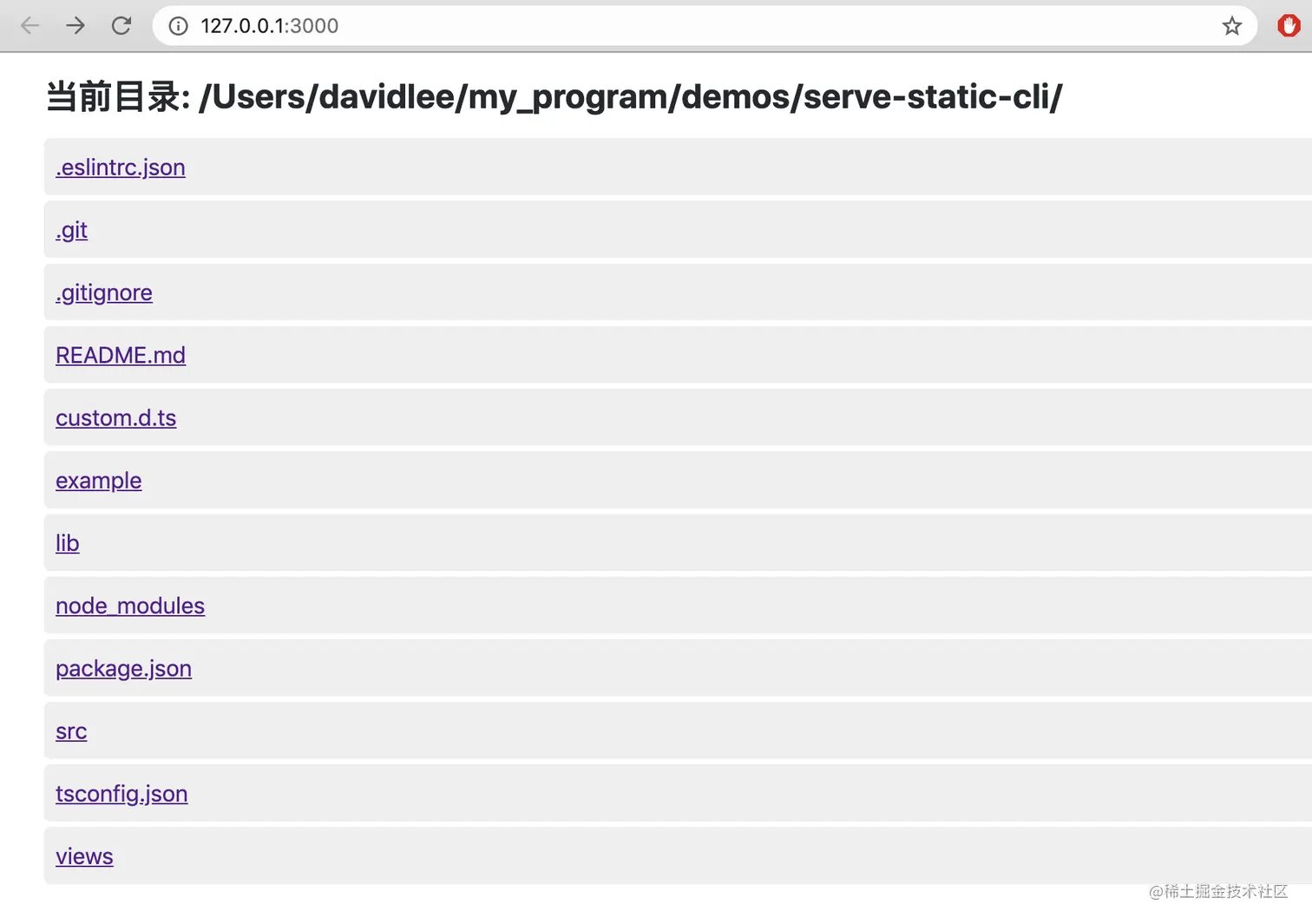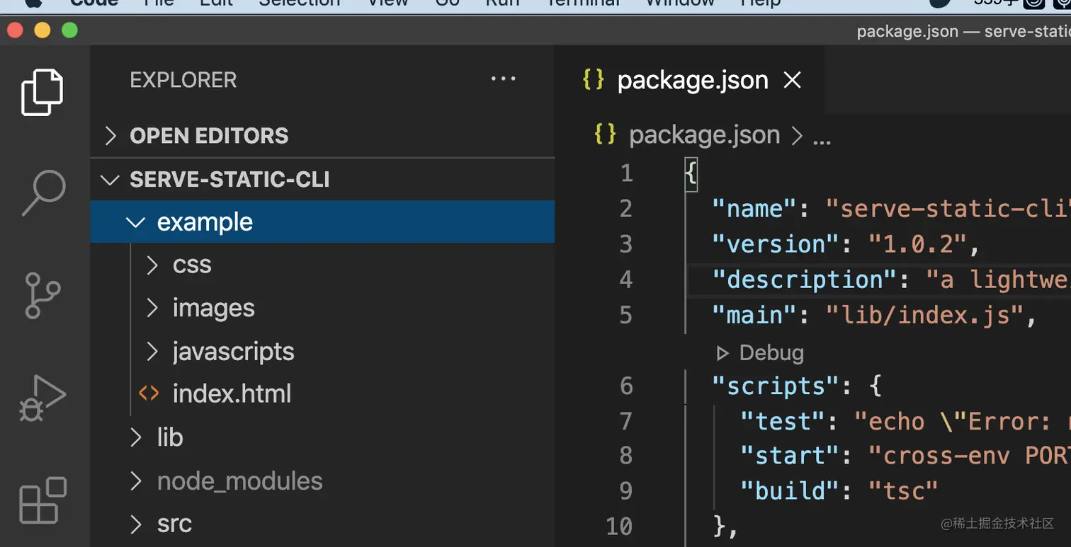 如果是本地项目,比如example目录里的测试项目,可以进入/example目录执行对应的serve-static-cli命令。如下是example目录: