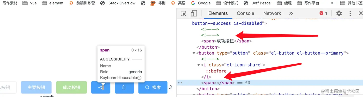 当没有内容的时候,可以看到这里有一个空白的 span 标签。并且会占用空间。