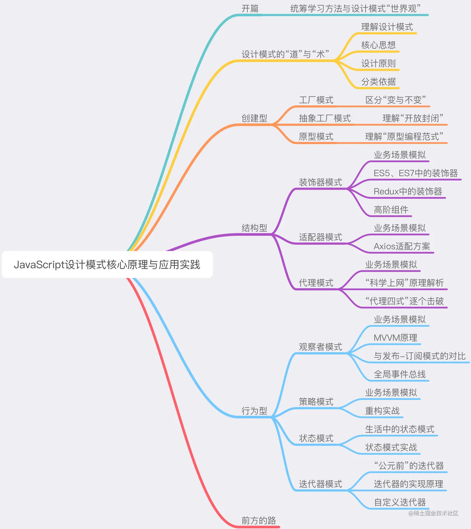 - 充分理解前端设计模式的核心思想和基本理念,在具体的场景中掌握抽象的设计原则