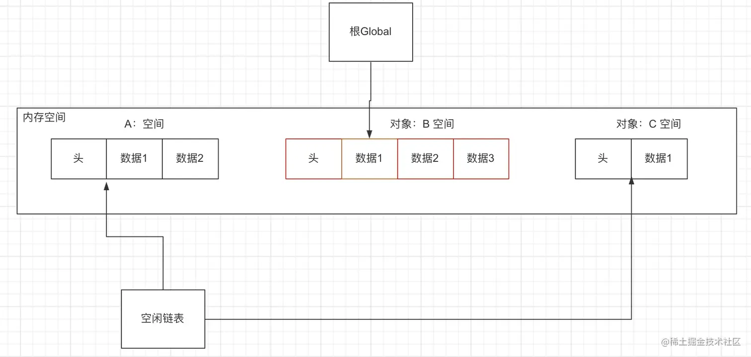看下图来理解标记清除算法: