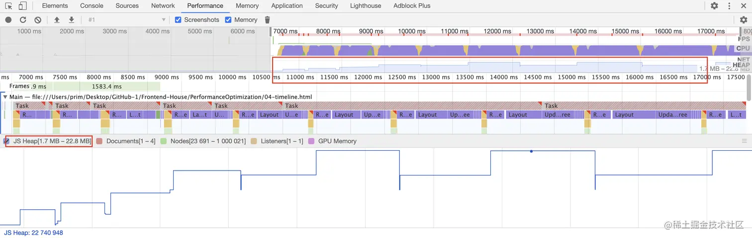 下面来演示闭包导致的内存泄露的问题