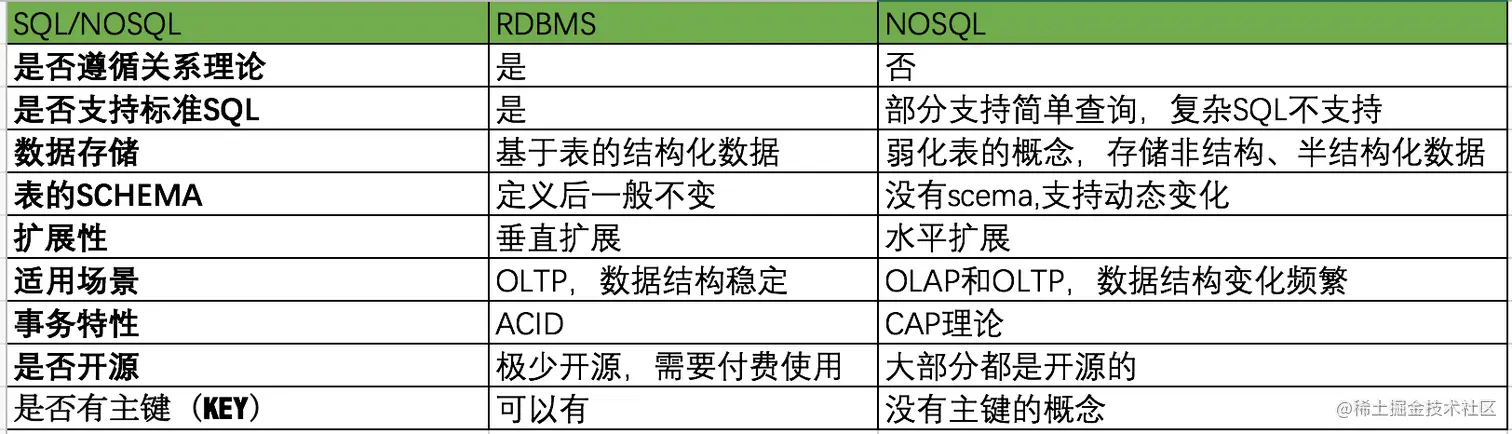 有人把NOSQL说成是’NOT SQL‘,我猜想应该是说它不支持标准的SQL语法吧,还有人把NOSQL说成是’NOT ONLY SQL‘,不仅仅是一种SQL,更多的是一个解决大数量下的存储问题的数据存储系统。不过我觉得叫成NEWSQL也未尝不可,首先这是相对于大家熟悉的旧的关系型数据库而言的,再则各类NOSQL都也一直在向着支持标准SQL语法的方向上前进,毕竟大家熟悉还是传统的SQL,而只有得到了用户,产品才有市场。当然传统的数据库也在不断的向着NOSQL的方向上努力,如支持json类型的数据,部分已经在尝试水平扩展等。