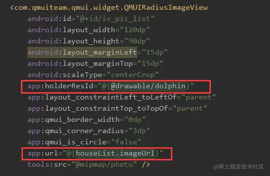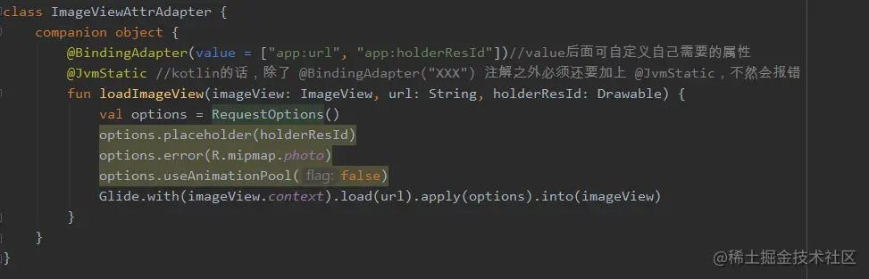 @BindingAdapter(value = ["app:url", "app:holderResId"])//value后面可自定义自己需要的属性