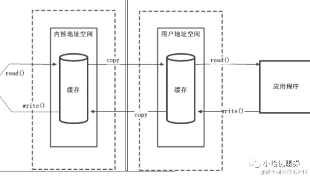 IO:物理内存--》内核空间--》用户空间--》应用程序