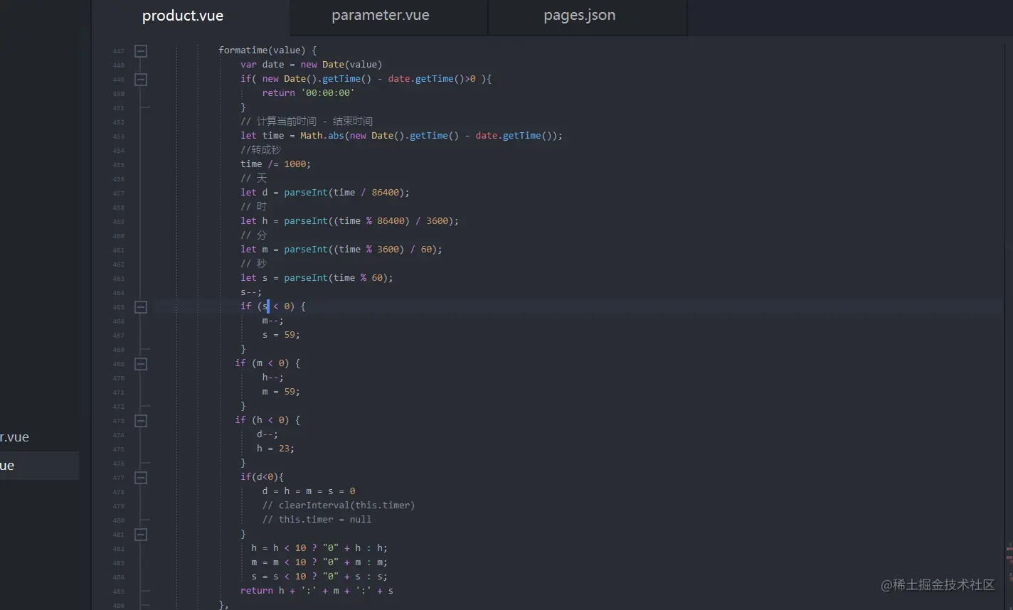 Vue实现24小时倒计时 野葛 2020-08-05 268 阅读1分钟 1.具体需求 2.实现方法 1.在data里定义一个timer 2.在methods里定义一个对结束时间处理转换为剩余时间的方法 3.通过调用此方法,对多项数据即数组中的数据进行处理 4.页面挂载之后开启定时器,循环调用 5.页面销毁时清除定时器