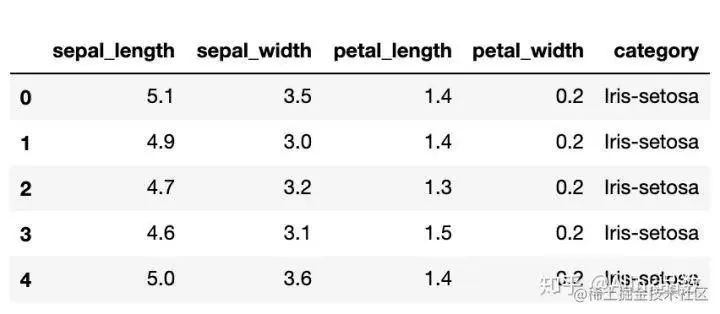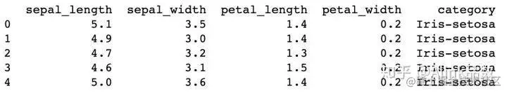 到这里,我们就已经实现了 Alink 数据到 Python DataFrame 的转化,下面我们就可以使用 Python 的函数,进一步处理 df_iris,譬如:使用 head() 方法,显示前 5 条数据。