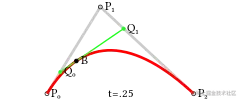 P0和P1计算出点Q0,Q0在P0 P1连成的直线上,并且length( P0, Q0 ) = length( P0, P1 ) * t - 同样,通过