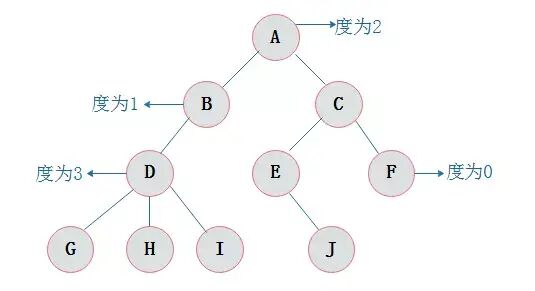 节点拥有的子树数目称为节点的`度`.