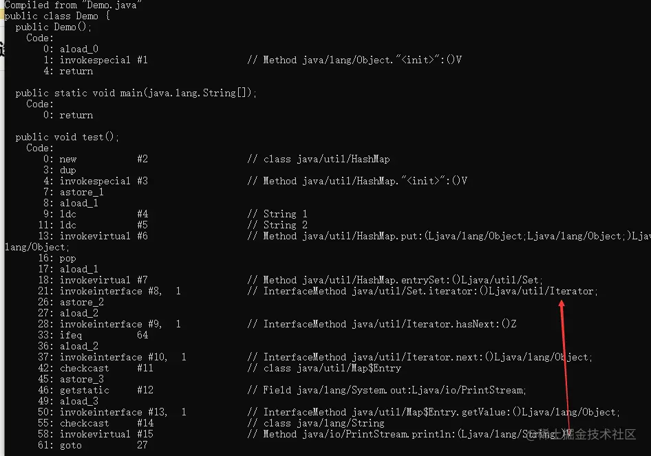KeyIterator就是取里面的key,ValueIterator就是取value值,于是我建议,当你在遍历中需要用到value和key的时候直接用entry吧。不要在通过啥子KeyIterator遍历到key后,再map.get(key)。好像一直忘记说了foreach只是迭代器的语法糖。你可以反编译进行查看。 javap -c 反编译如下如