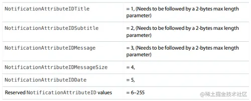 当NC(外设)希望从NP(手机)读取Notification的详细信息时,它需要向Control Point characteristic发送一些命令,格式如下: