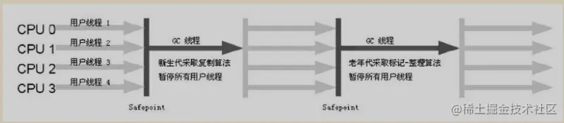 这个收集器是一个单线程的收集器,但它的“单线程”的意义并不仅仅说明它只会使用一个CPU或一条收集线程去完成垃圾收集工作,更重要的是在它进行垃圾收集时,必须暂停其他所有的工作线程,直到它收集结束。它依然是虚拟机运行在Client模式下的默认新生代收集器