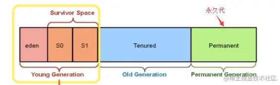 上图所示的eden,s0("From")区,s1("To")区都属于新生代,Tenured属于老年代。