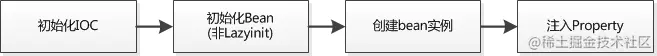 当完成初始化IOC容器后,如果bean没有设置lazy-init(延迟加载)属性,那么bean的实例就会在初始化IOC完成之后,及时地进行初始化。初始化时会先建立实例,然后根据配置利用反射对实例进行进一步操作,具体流程如下所示: