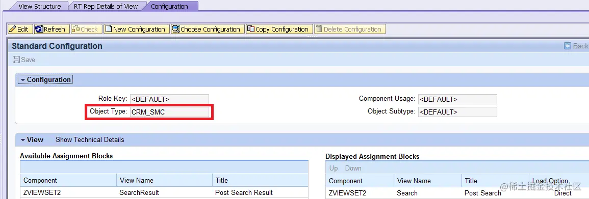 Now we have two UI configurations. The standard configuration will display two assignment blocks by default, the configuration with UI object type = CRM_SMC will only display Search view.
