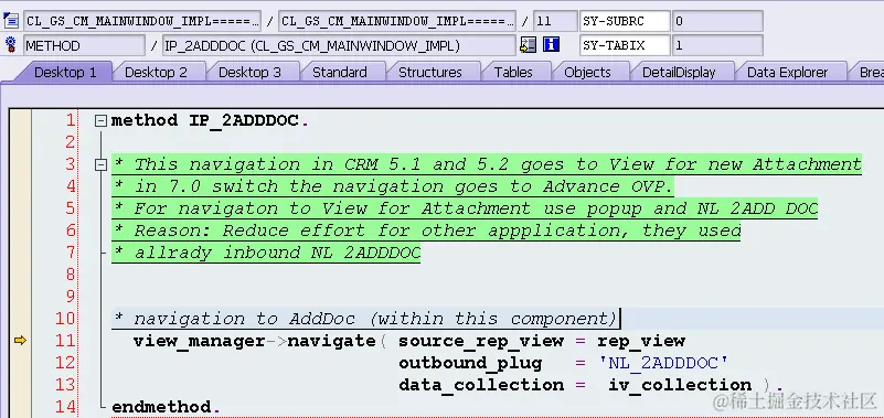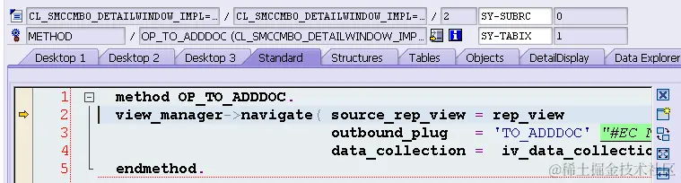 Since the navigation target is SMCCMBO/MainWindow, its inbound plug 2ADDDOC will be called: