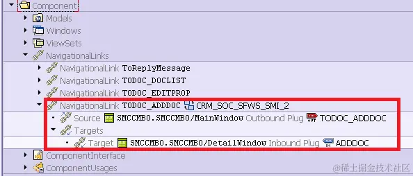 This means you should define the navigation link TO_ADDDOC in wrapper component SMCCMBO.