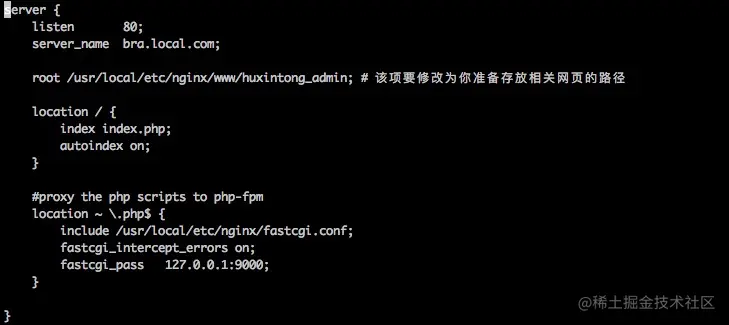 location ~ \.php$ { include /usr/local/etc/nginx/fastcgi.conf; #加载nginx的fastcgi模块