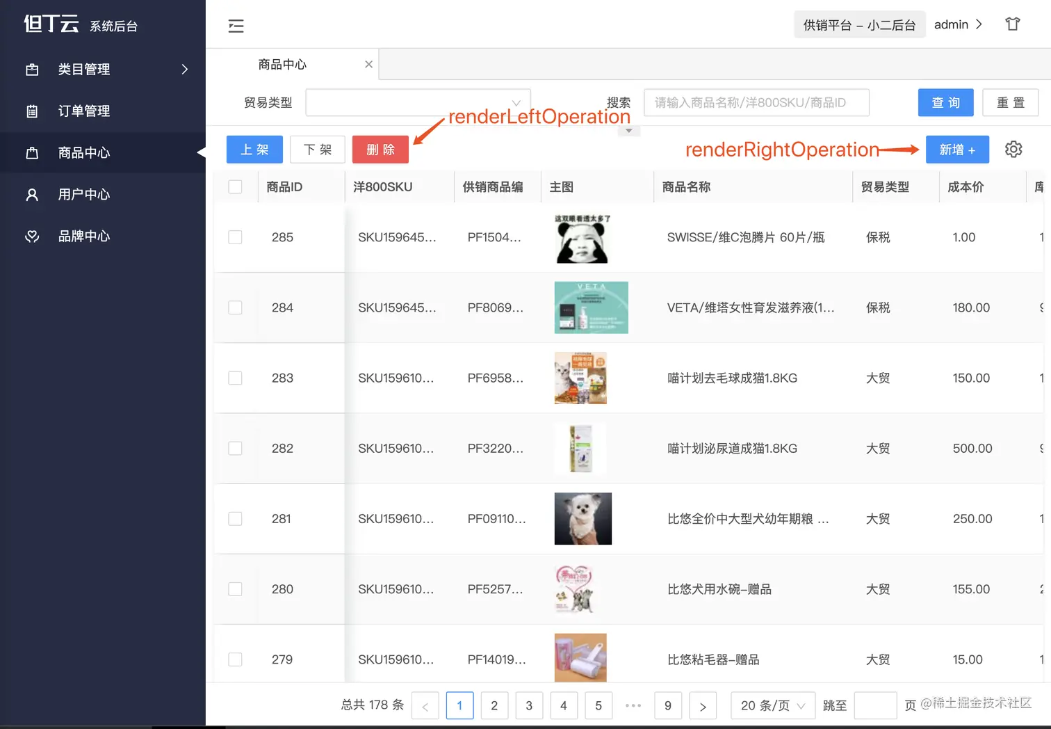 - renderRightOperation:渲染其它操作按钮,比如新建按钮