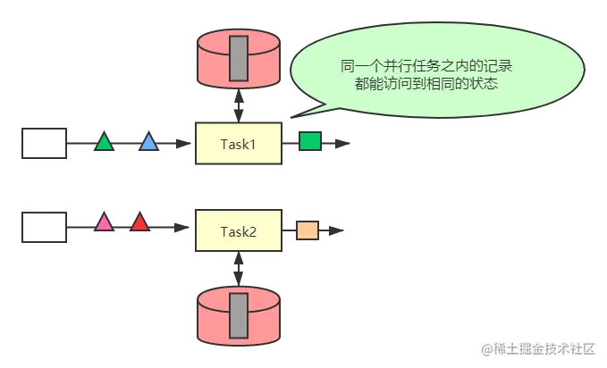 值得注意的是,上面的状态原语都支持通过State.clear()方法来进行清除状态。另外,上述的状态原语仅用于与状态进行交互,真正的状态是存储在状态后端(后面会介绍状态后端)的,通过该状态原语相当于持有了状态的句柄(handle)。