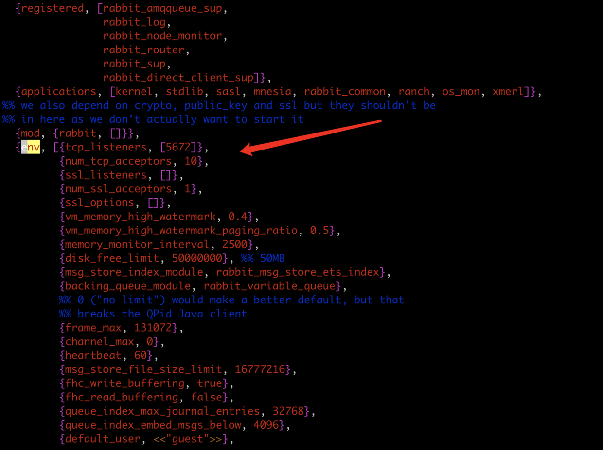 vim /usr/lib/rabbitmq/lib/rabbitmq_server-3.6.5/ebin/rabbit.app 比如修改密码、配置等等,例如:loopback_users 中的 <<"guest">>,只保留guest 服务启动和停止: 启动 rabbitmq-server start & 停止 rabbitmqctl app_stop