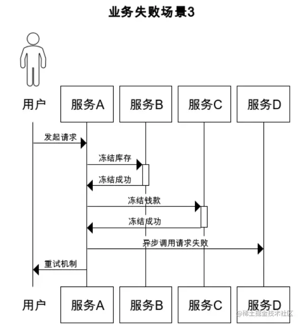 这里展示了三种失败的场景,对于前两种,失败了就需要做回滚的处理: