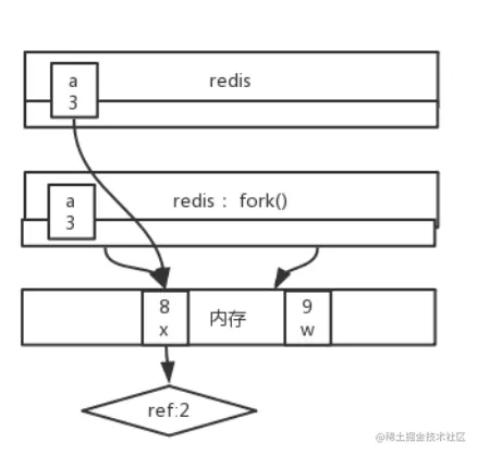 使用fork 快照一个数据的指针集到子进程中(速度快,空间小)