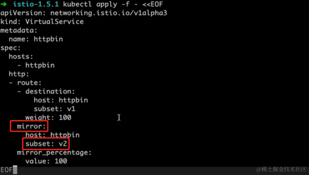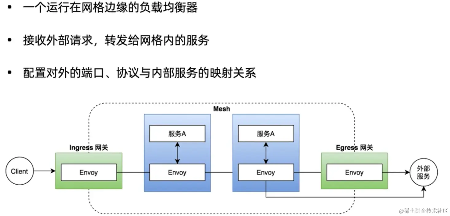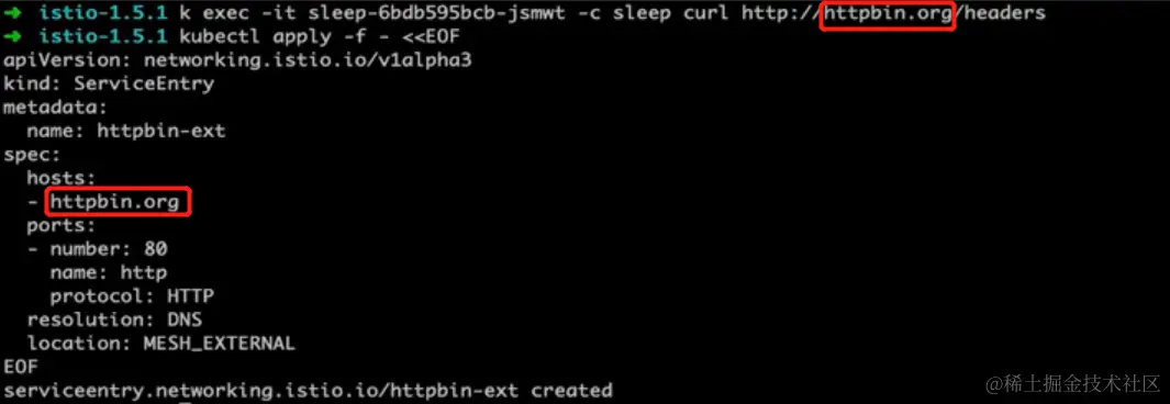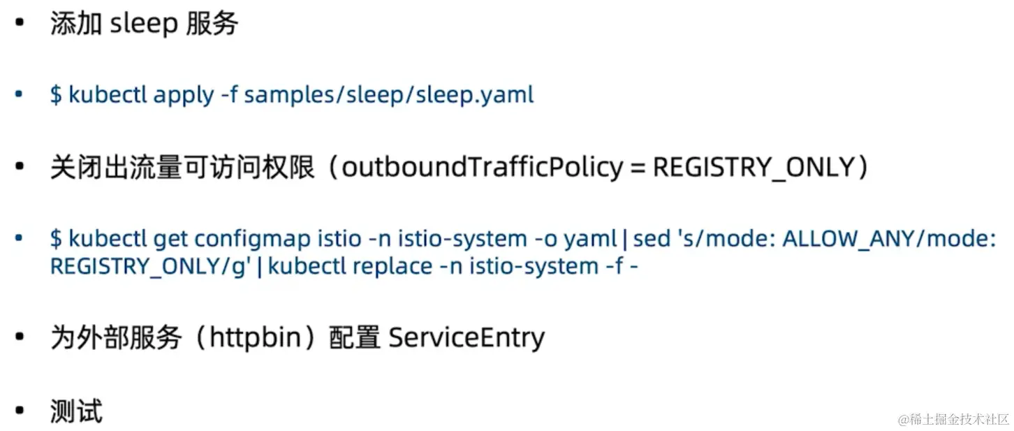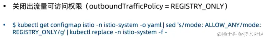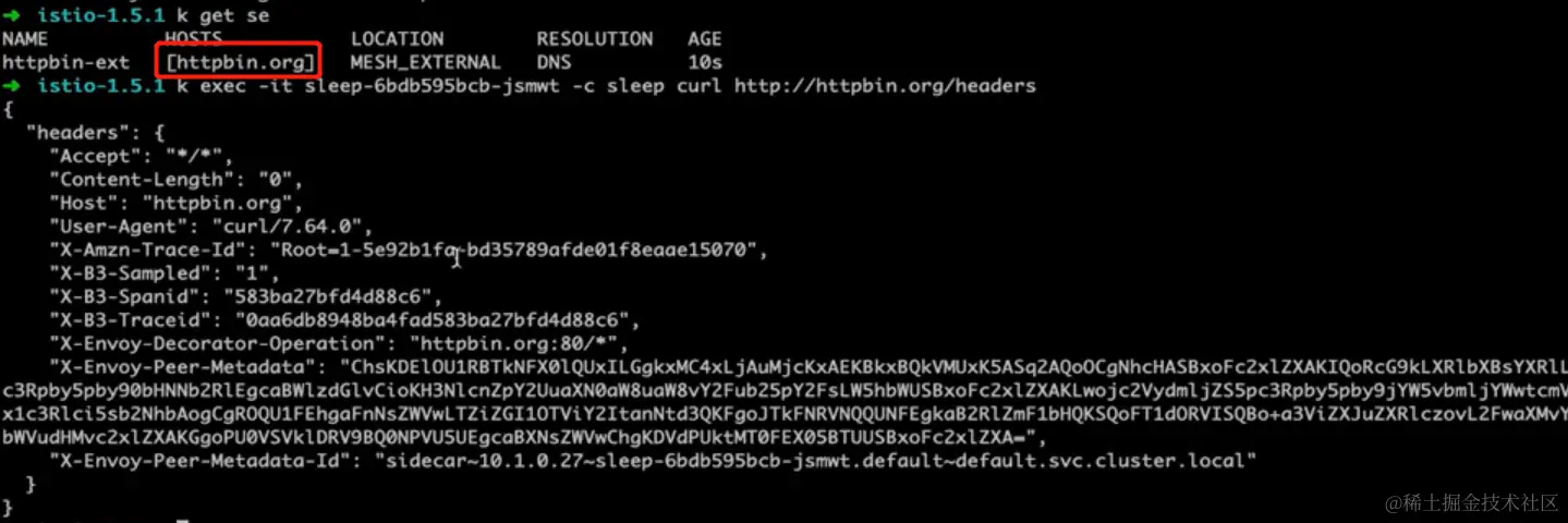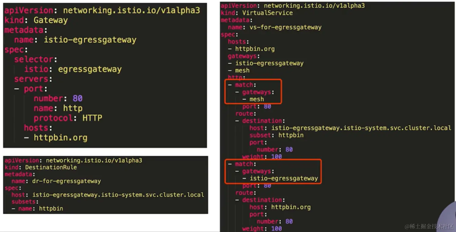 - VirtualService中的另一部分规则作用在istio-egressgateway上,会把出口流量引导至集群外部