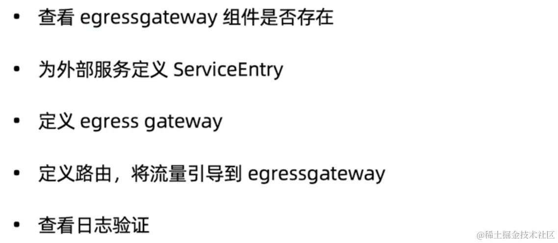 - 配置中的match的gateways表示这一条路由规则是作用在mesh上的,也就是整个网格中所有的sidecar上,port表示所有访问80端口的流量才会应用这条规则,因为本例中只提供了80端口的服务,所以这一项是可以省略掉的destination表示会把所有路由后的流量导入istio-egressgateway.istio-system.svc.cluster.local service的cnn sbuset下的80端口,这里需要注意的是,istio-egressgateway是在Istio部署时定义的service,已经开放了80,443端口,在真实使用中如果要用到别的端口,需要在istio-egressgateway的定义中做对应的修改