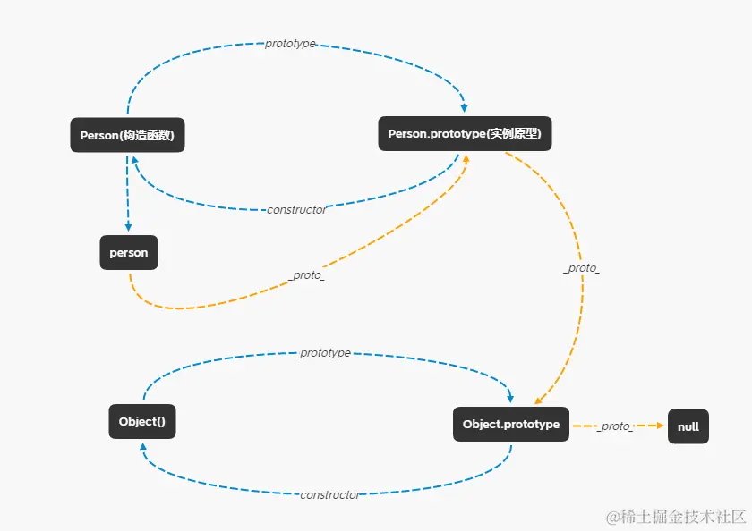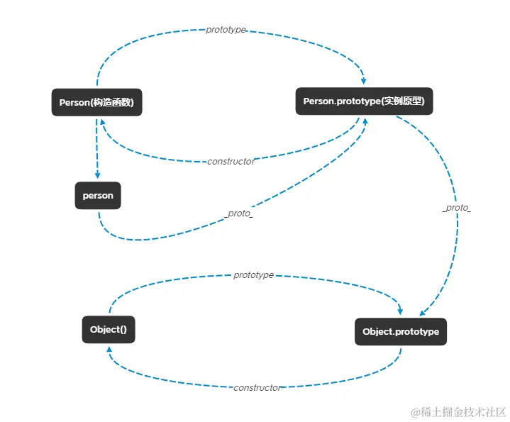 原型对象就是通过Object构造函数生产的,实例的_proto_指向构造函数的prototype。