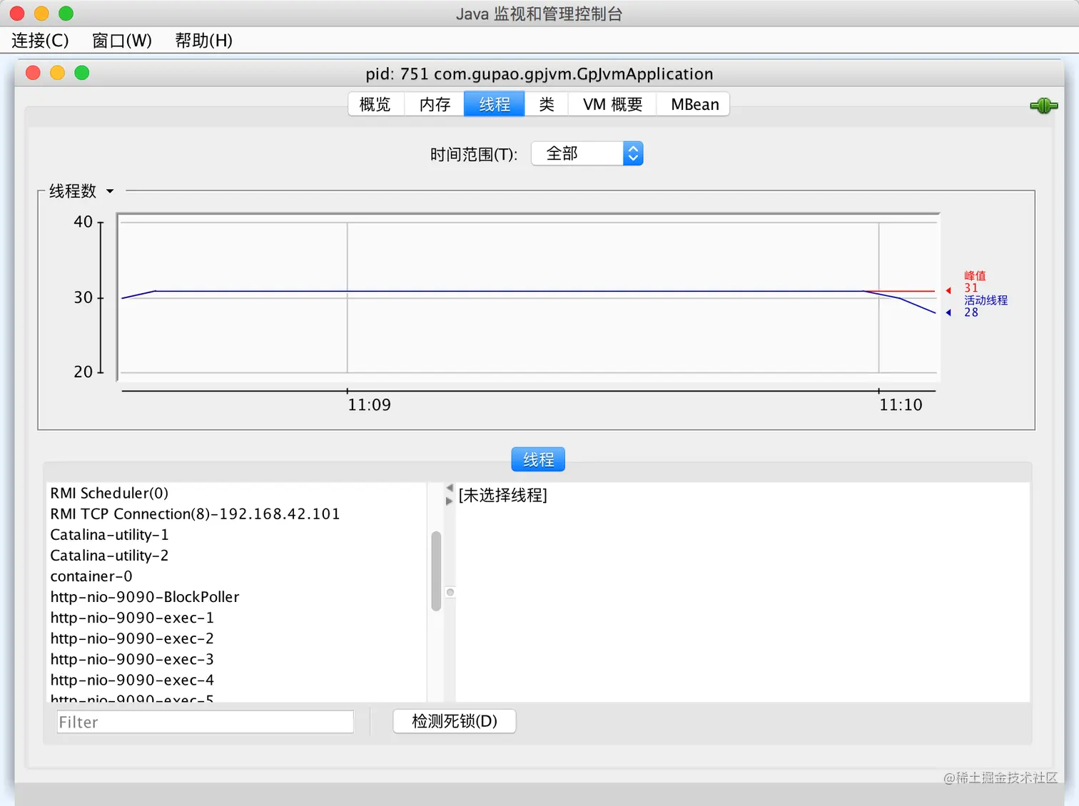 ** JConsole工具是JDK自带的可视化监控工具。查看java应用程序的运行概况、监控堆信息、永久区使用 情况、类加载情况等 **