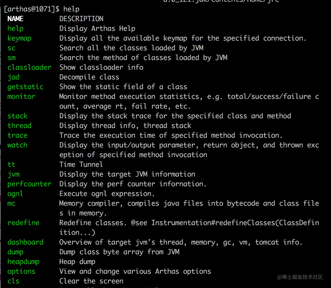 ** Alibaba开源的Java诊断工具,采用命令行交互模式,是排查jvm相关问题 **