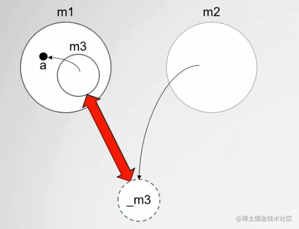 也就等价于m2间接的,访问到了变量a