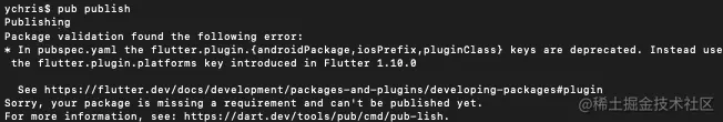 pubspec.yaml发布插件将不再支持旧格式。如果尝试执行pub publish时会收到以下错误消息: