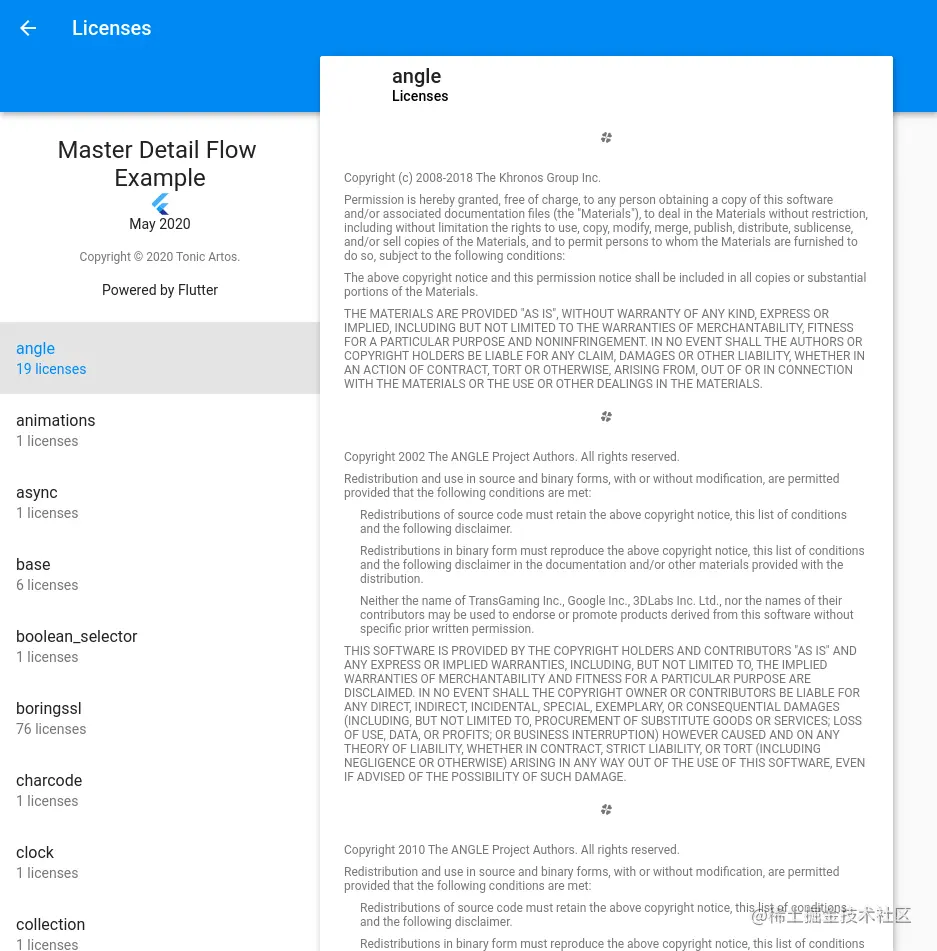 来自社区贡献者 TonicArtos 的 PR 57588 不仅进行了更新,以符合 Material 准则,使其看起来非常美观,而且更易于浏览,并设计为可在平板电脑和台式机上以及在手机上正常使用。谢谢 TonicArtos!由于每个 Flutter 应用程序都应显示其使用的软件包的许可证,因此使每个 Flutter 应用程序都变得更好了。