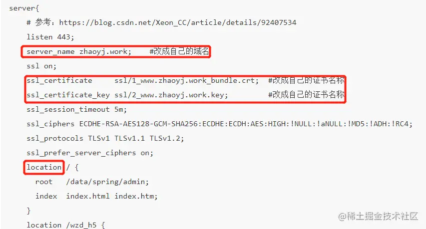 ssl_certificate_key ssl/2_www.zhaoyj.work.key; #改成自己的证书名称