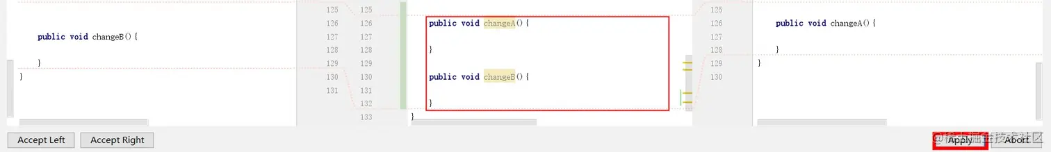 根据实际代码逻辑情况解决冲突。如图,点击Apply。
