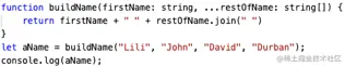 arguments来访问所以传入的参数。在TypeScript里,可以把所以参数收集到一个变量里 - 剩余参数会被当作个数不限的可选参数。可以一个都没有,同样也可以有任意个
