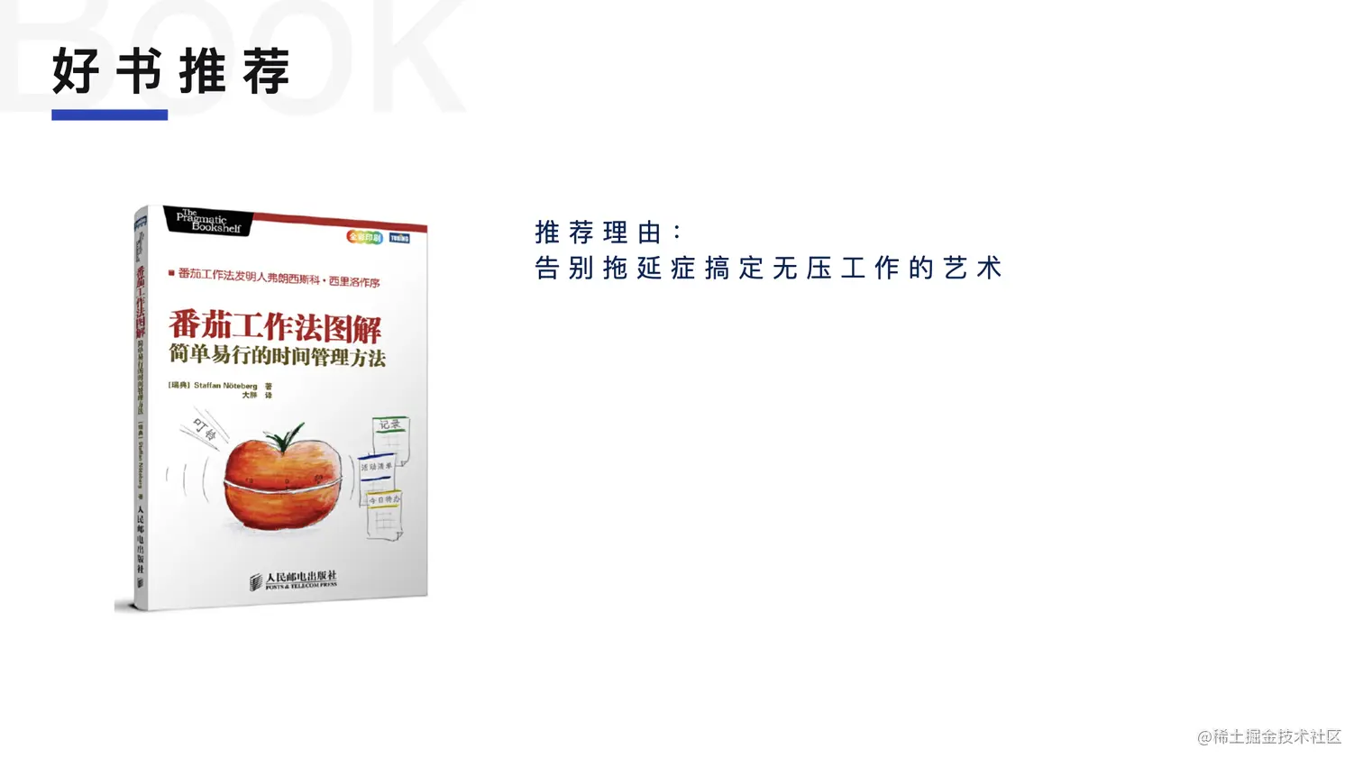 最后推荐一下「番茄工作法图解」,方便大家提升自己的时间管理能力。能够高效的管理自己的时间,然后才能在繁忙的工作里找到机会提升自己。如果说每天都沉于业务,没有时间去提升自己的话是很容易被淘汰的。