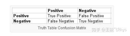 左边的positive,negative表示样本真实值,表格上边的positive,negative表示样本的预测结果。