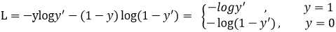 - y’是模型给出的预测类别概率,y是真实样本。就是说,如果一个样本的真实类别是1,预测概率是0.9,那么就是这个损失。
