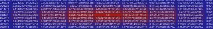 可以看到,数字1的四周是同样的数字。这是一个以1为中心的高斯平滑。