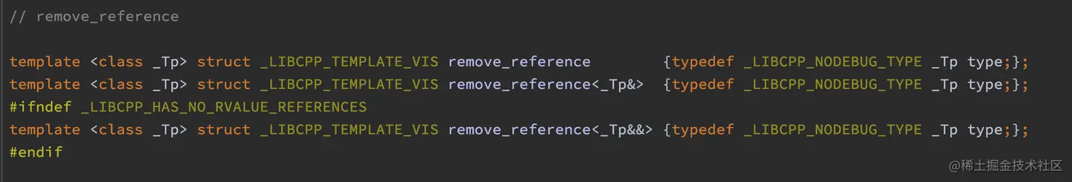 现在看着是调用了一个remove_reference,然后把得到的值直接强制转换成右值引用。而这个remove_reference干的确实就是名字的事情,不管你传进来的是啥我最后返回一个没有引用类型的类型。