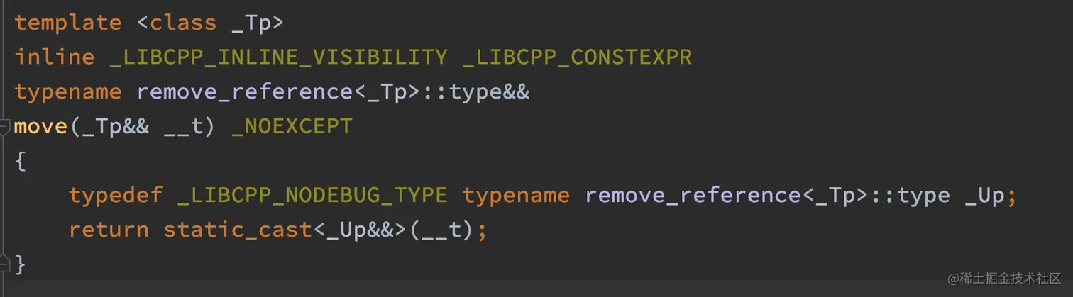 那这个神秘的std::move() 又干了啥能让一个左值变成右值呢?看一下STL实现